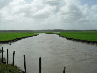 Une fois le soleil revenu l'après-midi, on est parti vers la Plage de Goiabal. 20 km de piste bien sympa traversant la forêt littorale, les pâtures, et d'immenses prairies inondées. Jacanas, hérons et aigrettes, spatules roses, ibis, étaient là mais ne les cherchez pas sur les photos, notre zoom ne les a pas vu.