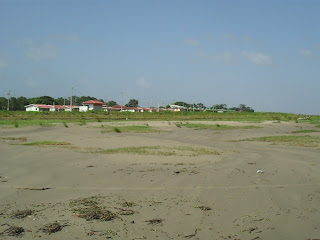 En janvier c'est complétement désert, mais il faut imaginer des centaines de juillettistes macapaenses qui viennent se ruer sur la plage à la belle saison. Il y a quand même de la place, à marée basse la plage fait plus d'une quinzaine de kilomètres.