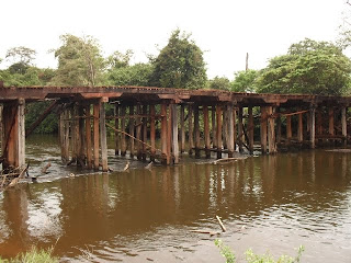 Revoici le pont "cortado" presque réparé, les semi-remorques attelés des camions citernes repassent par dessus.