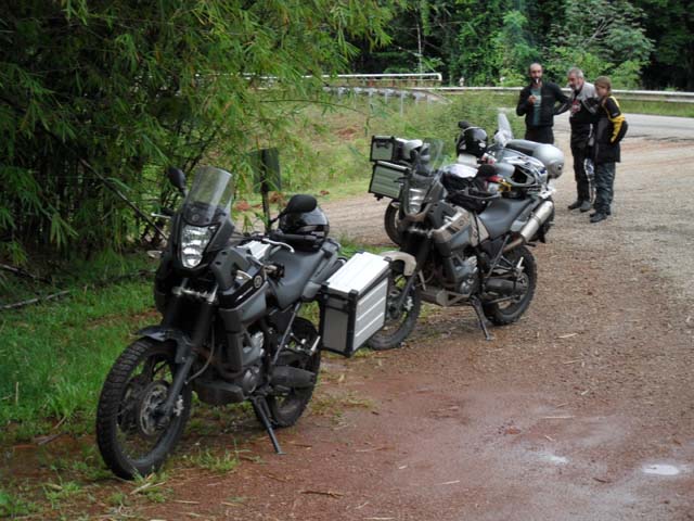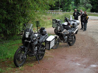 On reconnaîtra en tenue, à la pause de l'auberge des orpailleurs, Manu et son Ténéré noir, Pierre et Aurélie.